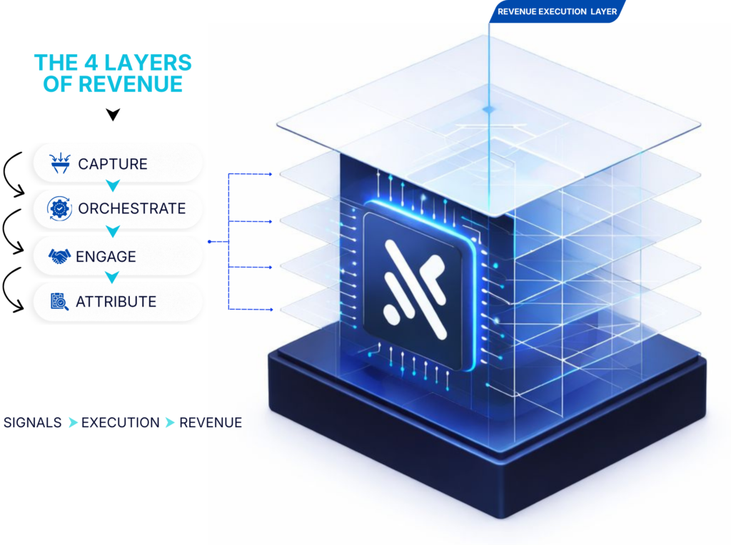It captures demand signals, orchestrates opportunity flow, engages potential buyers through AI-driven actions, and attributes outcomes across the entire revenue cycle—ensuring that growth does not degrade execution.