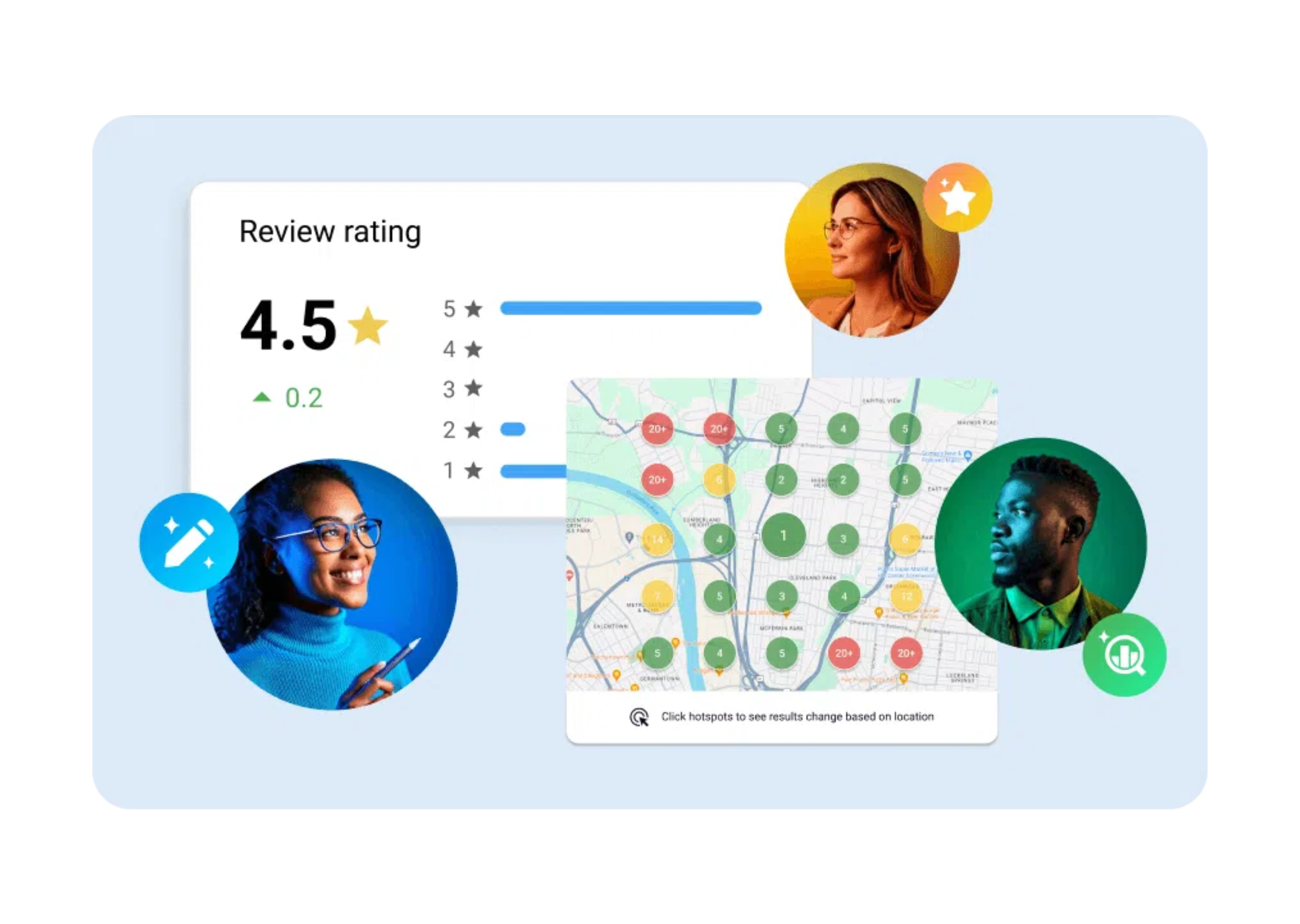Los clientes potenciales encuentran tu negocio con la ayuda del Especialista en SEO y el Creador de contenido, y lo eligen por las fantásticas reseñas y respuestas del Especialista en reputación.