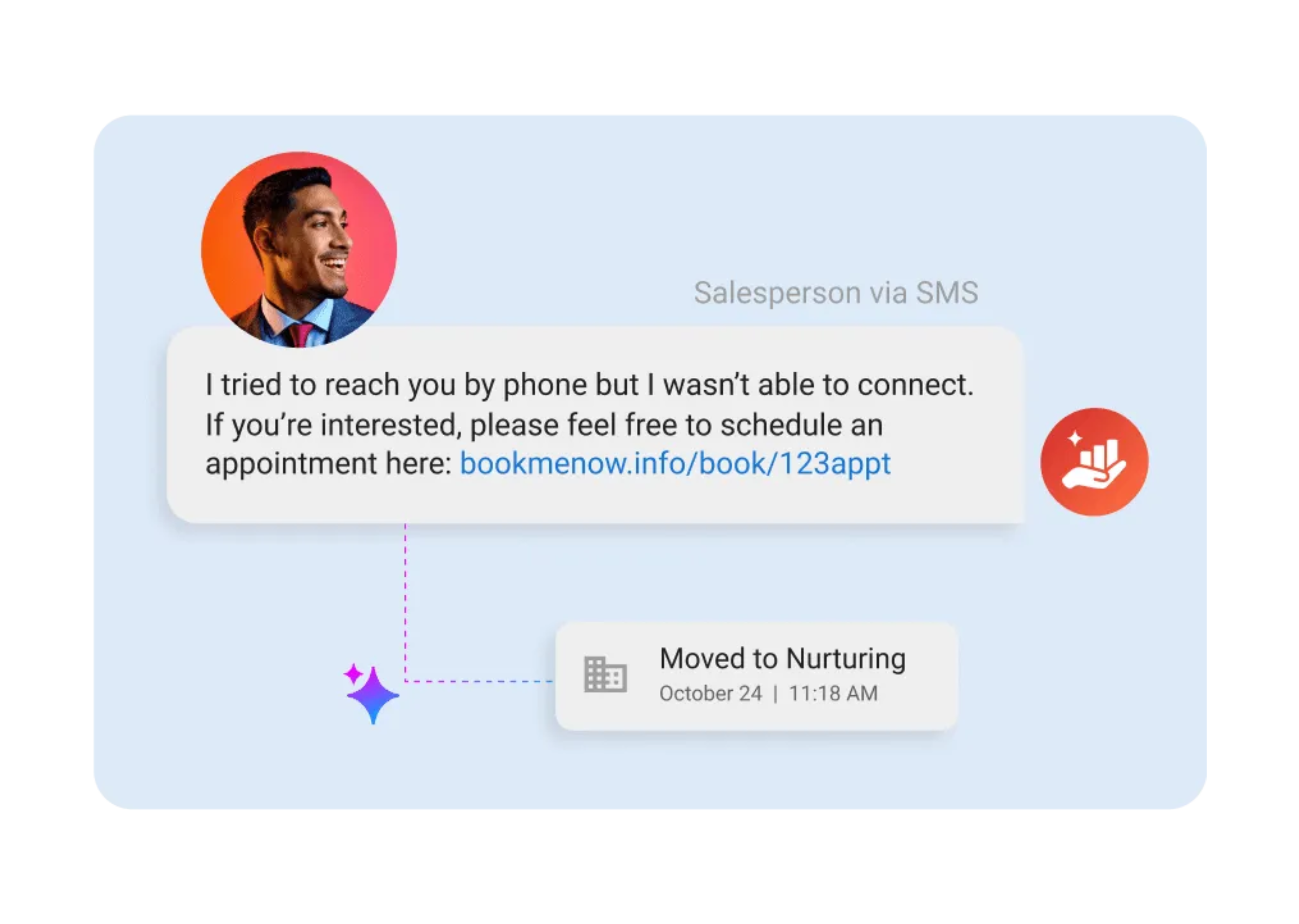 El Sales Agent espera el momento perfecto para contactar a clientes anteriores y enviar mensajes y promociones personalizados, fomentando la repetición del negocio.