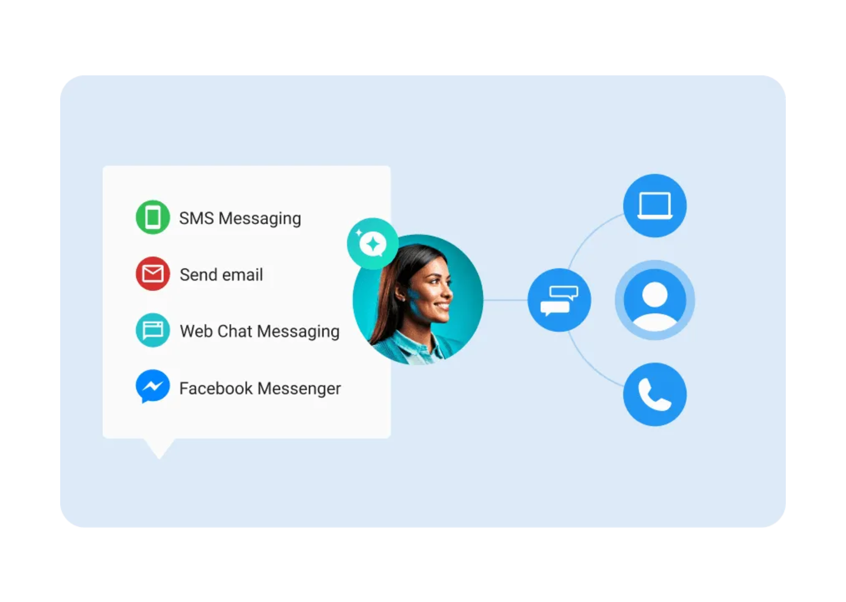 Los clientes potenciales interactúan con el asistente virtual a través de teléfono, SMS o mensajería en línea para recibir respuestas rápidas y útiles, reforzando su decisión de trabajar con la empresa.