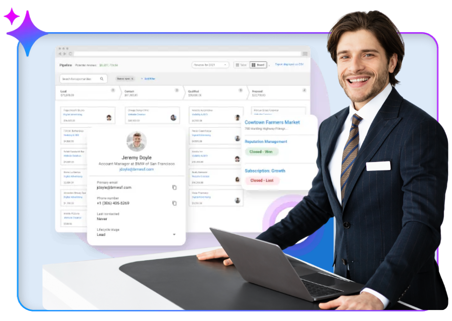 Convierte oportunidades en clientes reales mediante pipelines automatizados y seguimiento inteligente que prioriza oportunidades, integra interacciones multicanal y conecta con decisores clave para lograr cierres efectivos.