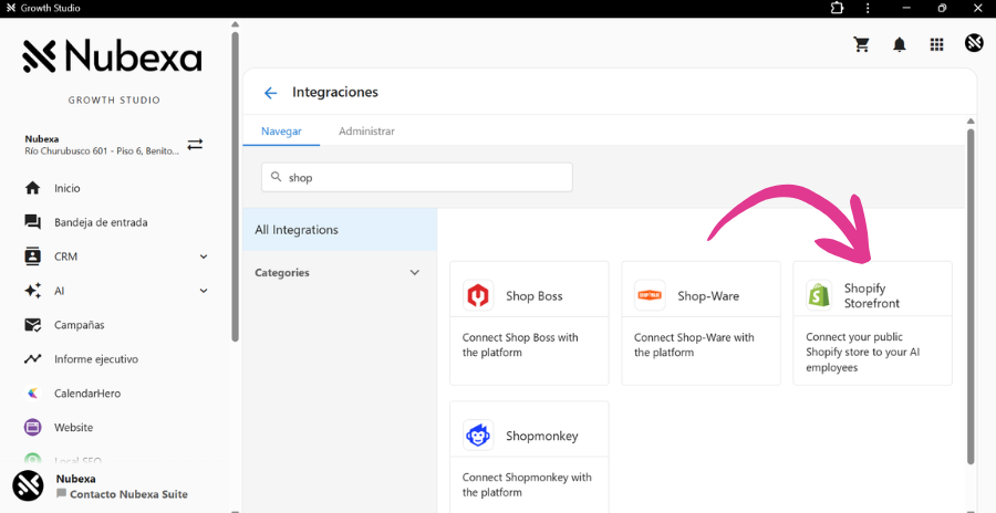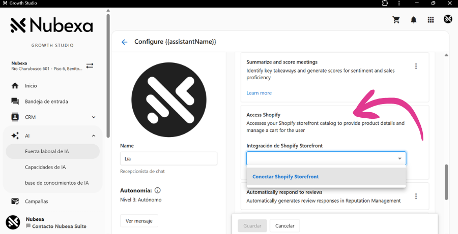 La integración de Nubexa con Shopify convierte las interacciones conversacionales en oportunidades de venta reales.
