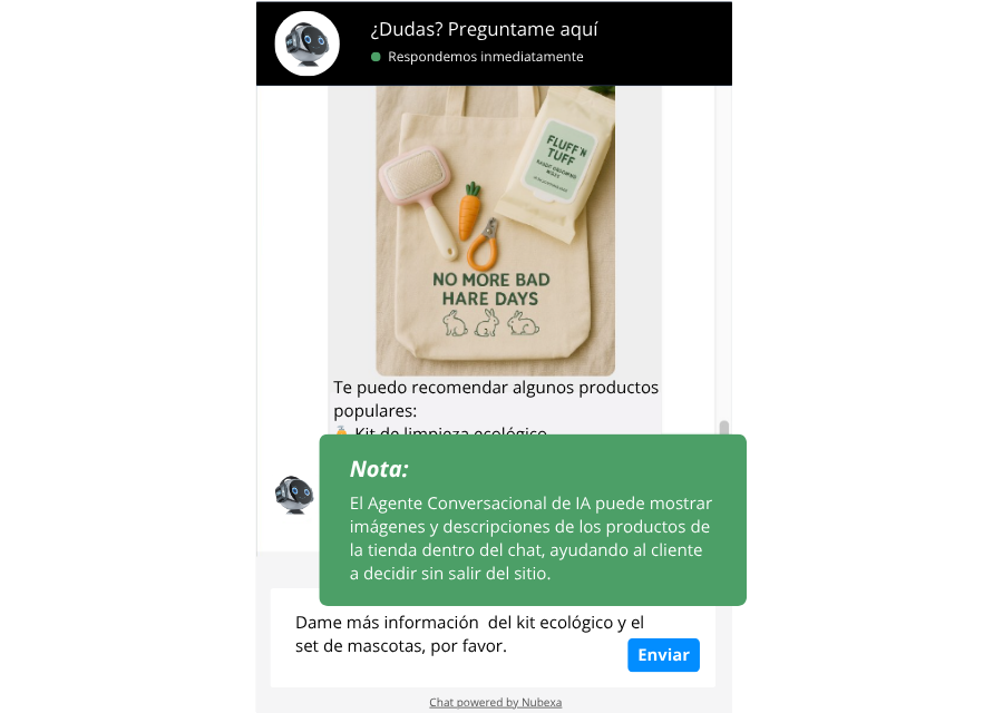 - A diferencia de herramientas cerradas que operan dentro de entornos limitados, Nubexa integra la IA directamente en los canales donde los clientes ya conversan, sin alterar flujos ni requerir cambios en la operación.