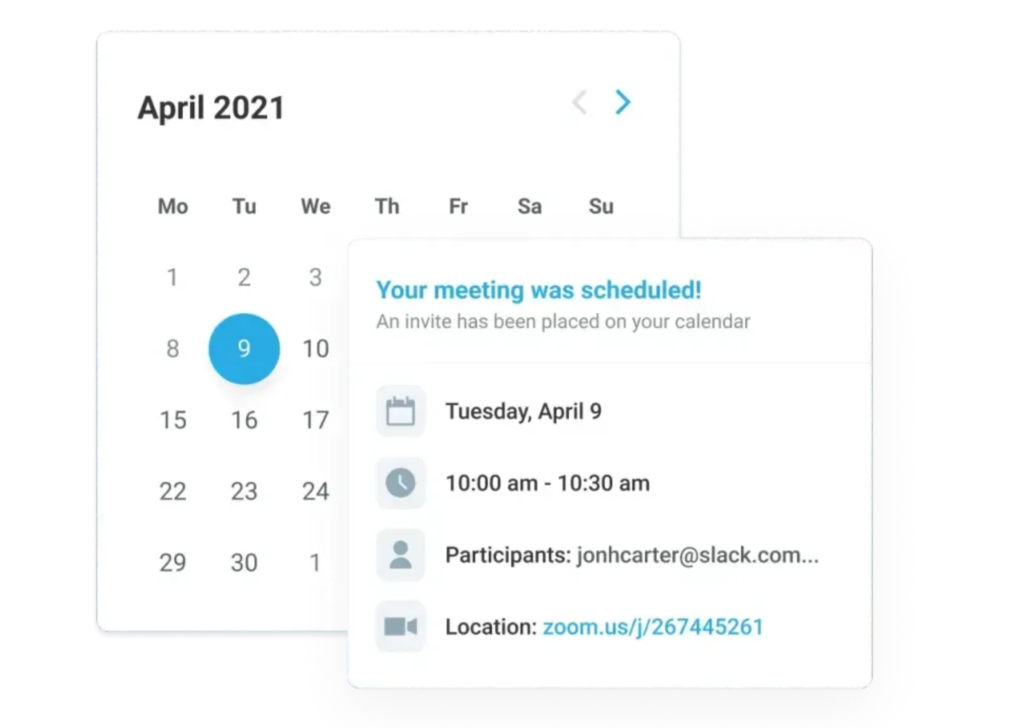 Facilita la programación de citas y el envío de invitaciones, enlaces de reunión y recordatorios.