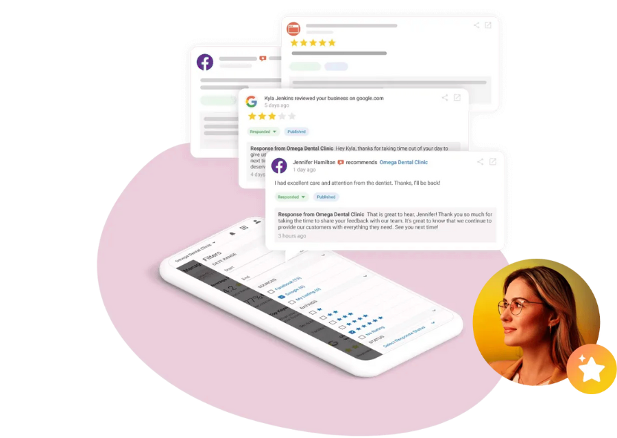 Solicita reseñas de cliente, responde automáticamente y monitorea la reputación digital de tu negocio.